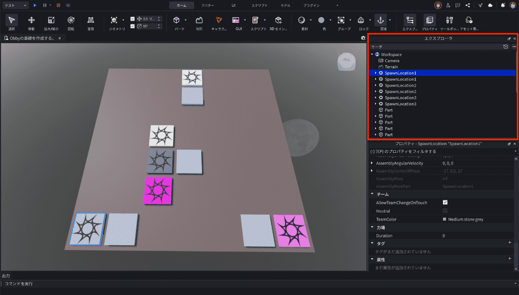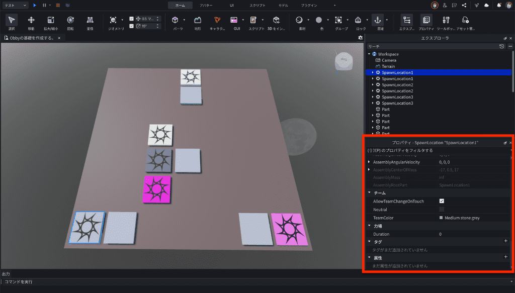 今回は、アスレチックゲーム(Obby)に必要なSpawnLocationの設定を紹介しました。